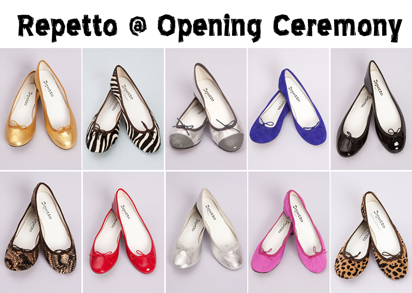 The Repetto ballet shoe is a classic staple of every woman's wardrobe. Black, white or tan are the classic colors that go with just about everything and will always be in fashion. But if you are bored of the basic black ballet slipper then head over to Opening Ceremony for their amazing selection of colored Repetto slippers ranging from metallics, bright colors and even animal prints that are part of a special Repetto X Opening Ceremony collaboration.